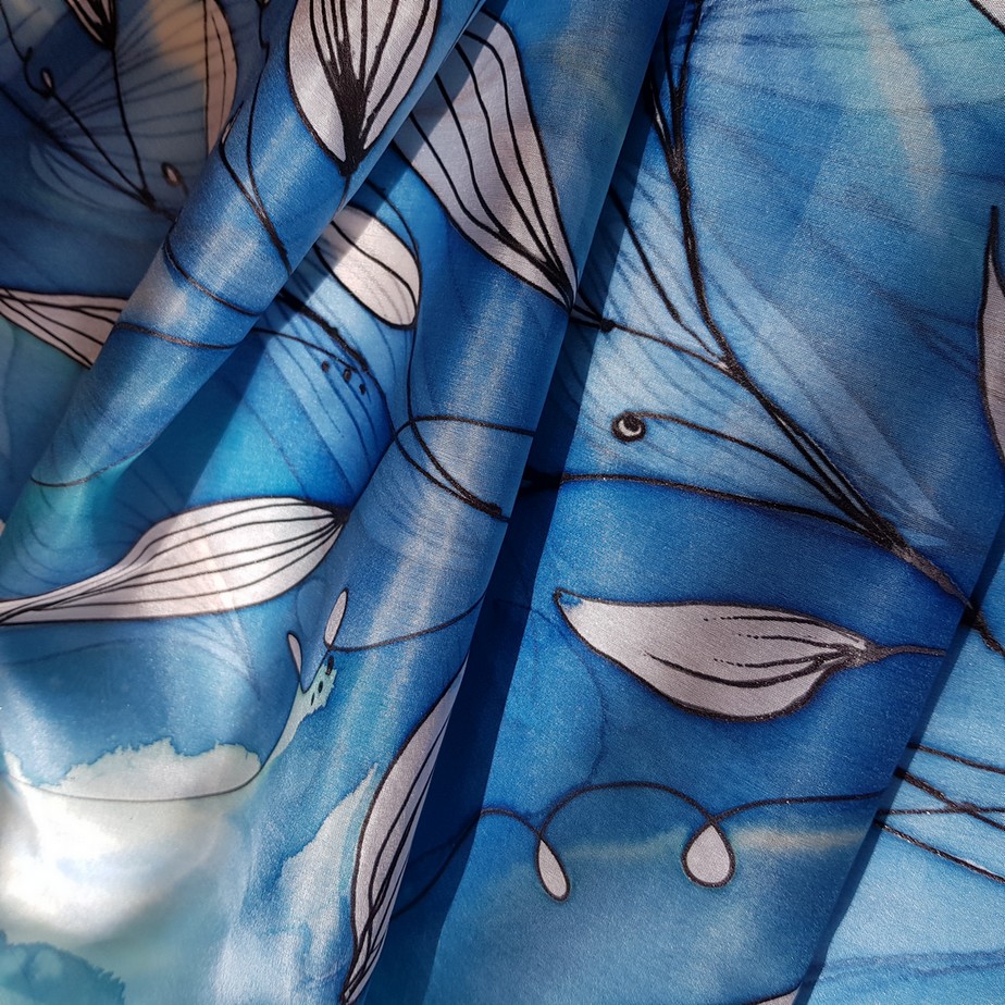 Ulubionym zajęciem i jednocześnie unikalnym dla Was produktem są moje ręcznie malowane i sygnowane nazwą firmy szale jedwabne - każdy o niepowtarzalnym wzorze, malowany pędzlem, niepowtarzalny. Idealny na prezent dla Waszych bliskich i przyjaciół - a przy tym unikatowy.