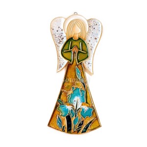 Ceramiczne anioły. W całości autorska i ręcznie wykonana praca. Ceramika. Duży anioł zawieszka z irysami.