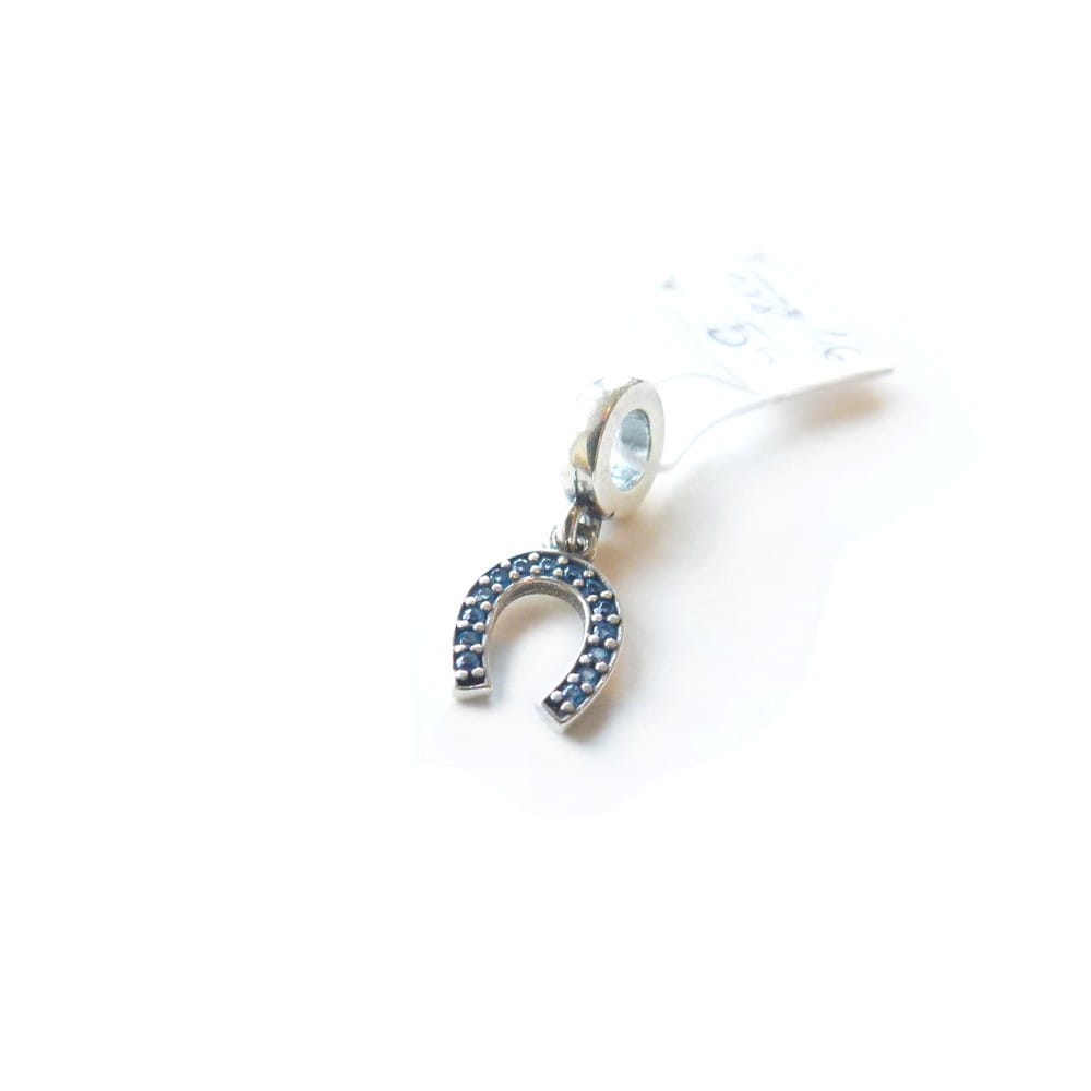Charms zawieszka srebrna do bransoletki podkowa niebieskie cyrkonie