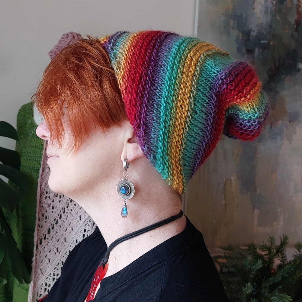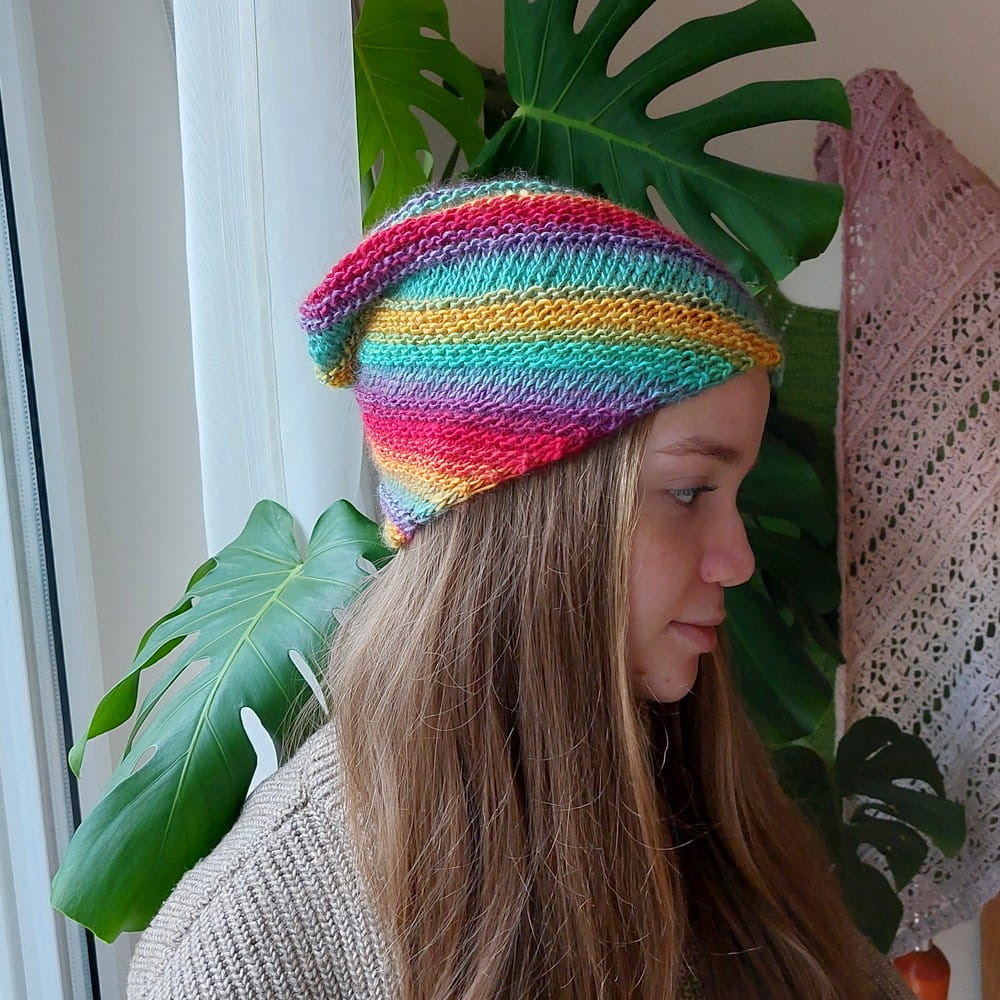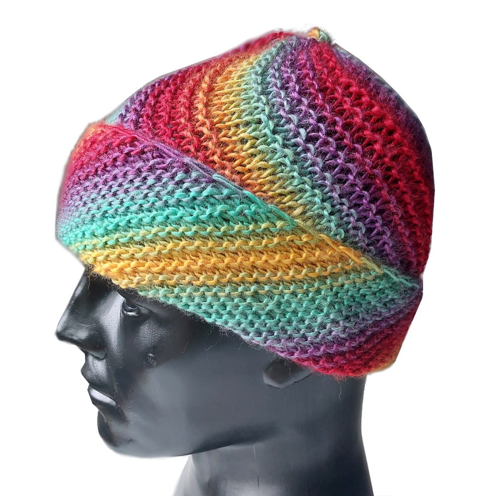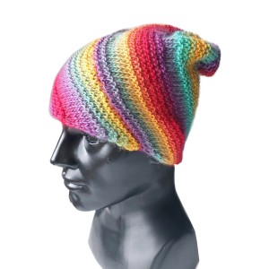 Czapka skośne paski wełniana smerfetka tęcza