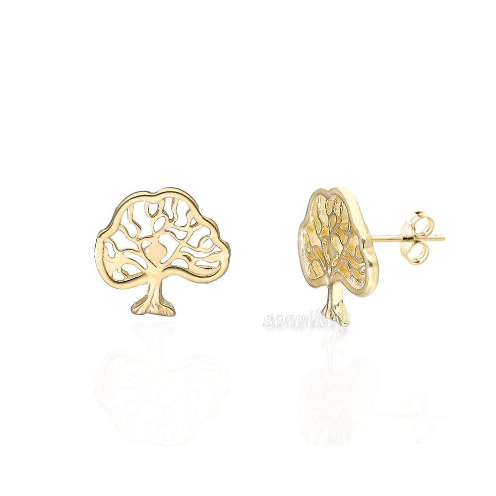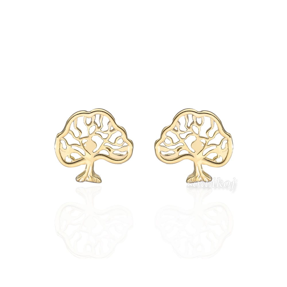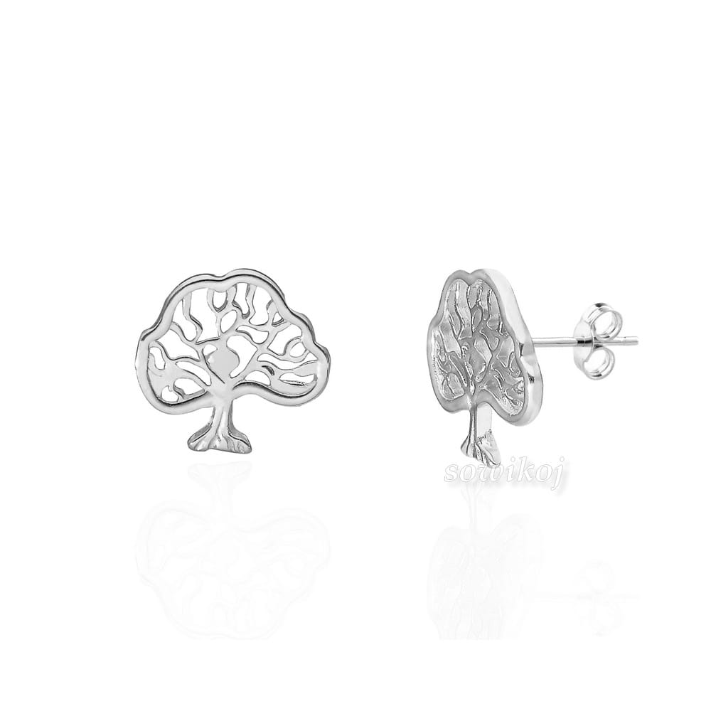 Drzewko srebrne kolczyki sztyft małe pozłacane dwie wersje