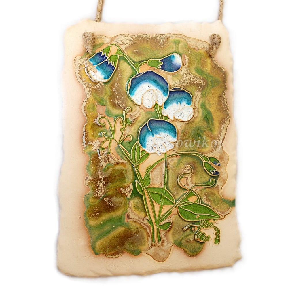 Groszek pachnący. Duzy panel ozdobny ceramiczny obraz z kwiatami. W całości autorska i ręcznie wykonana praca. Ceramika.
