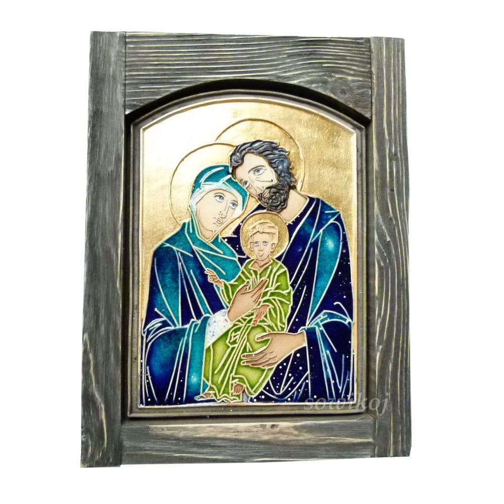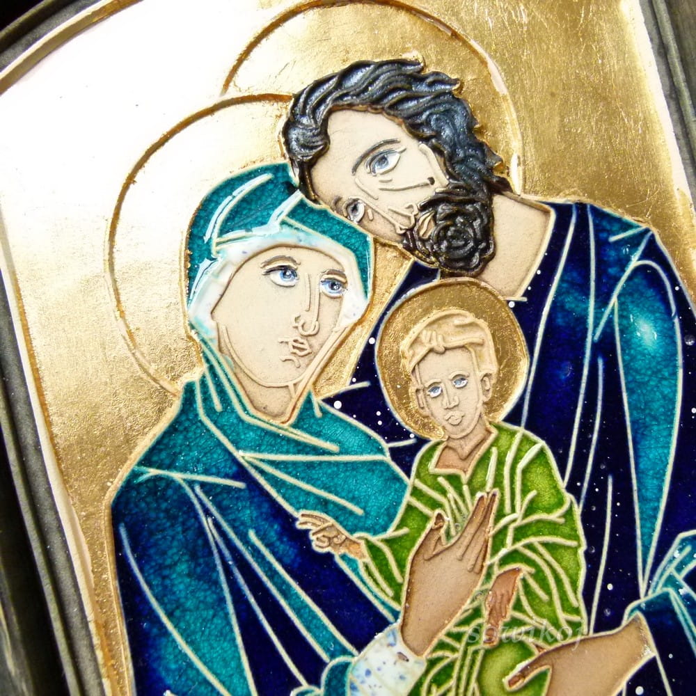 Ikona ceramiczna Boża rodzina duża Turkus