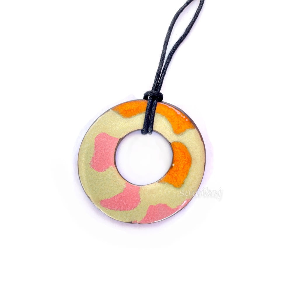 Autorska biżuteria artystyczna - zawieszka niczym słodki donut. Ciekawy wisior ceramiczny, okrągły szkliwiony - ręcznie wyrabiany i wypalany w piecu.