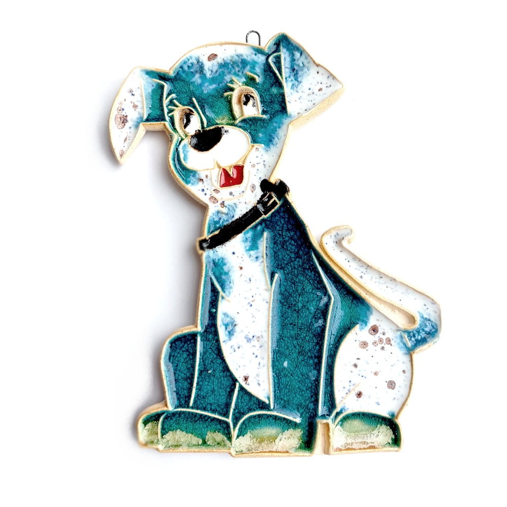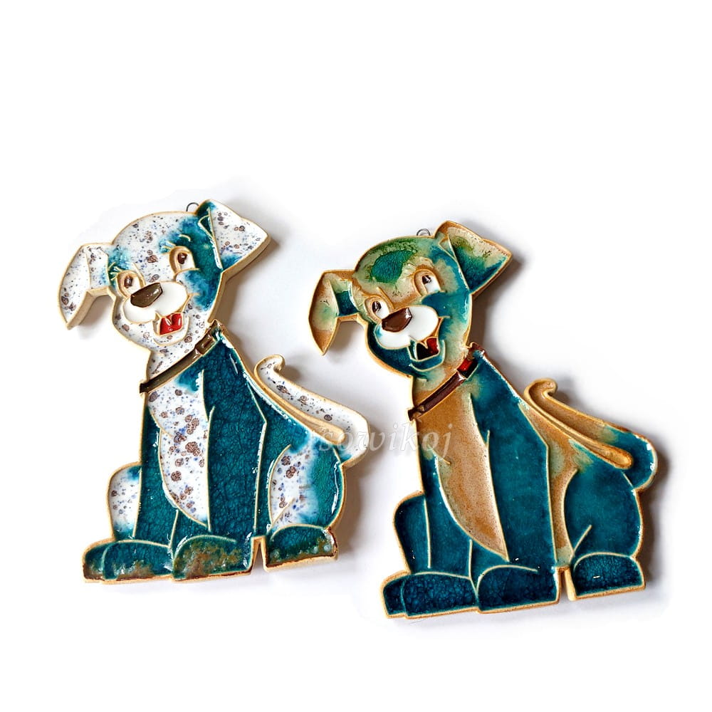 W całości autorska i ręcznie wykonana praca. Ceramika szkliwiona. Piesek do zawieszenia przykładowo na ścianie.