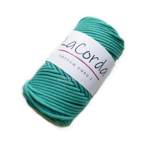 Sznurek w pięknym kolorze. Turkus miętowy lekko zielony. Kolorowy sznurek polskiego producenta LaCorda - cotton cord 3. Grubość 3-4mm z rdzeniem. Gruby bawełniany z rdzeniem bawełnianym. Przeznaczony do szydełkowania lub robienia na drutach idealnie się sprawdzi do wiązania makramy. Dzięki niemu zrobisz piękne torebki, koszyki, dywany, podkładki itp. Duże motki!