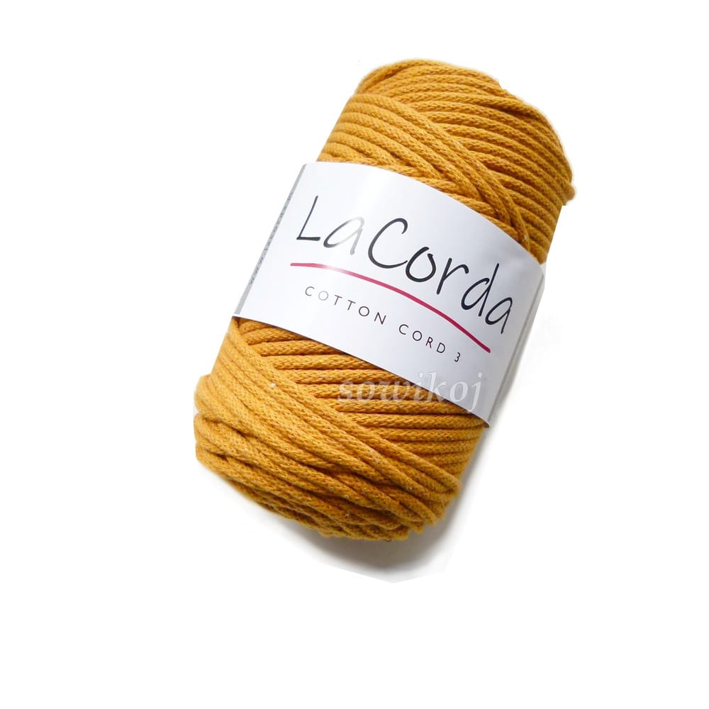 Kolorowy sznurek bawełniany 3mm LaCorda musztardowy żółty kol.400 z rdzeniem piaskowy 100m