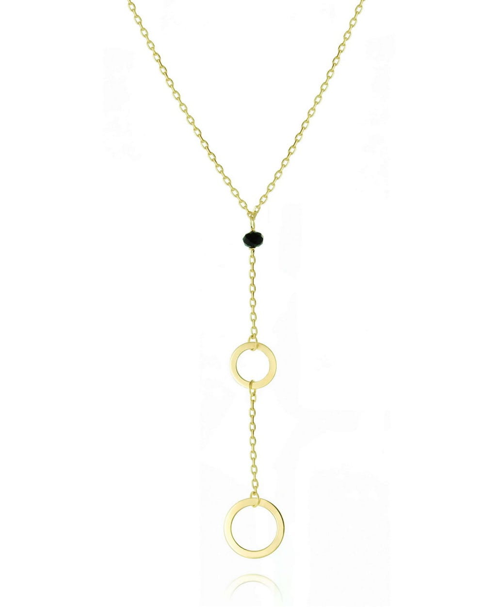 Srebrny delikatny i ciekawy naszyjnik - dwa kółeczka i czarny spinel. Wisząca w dekolcie zawieszka delikatnie podkreśla dekolt. Srebro próby 925 pozłacane 24k złotem.