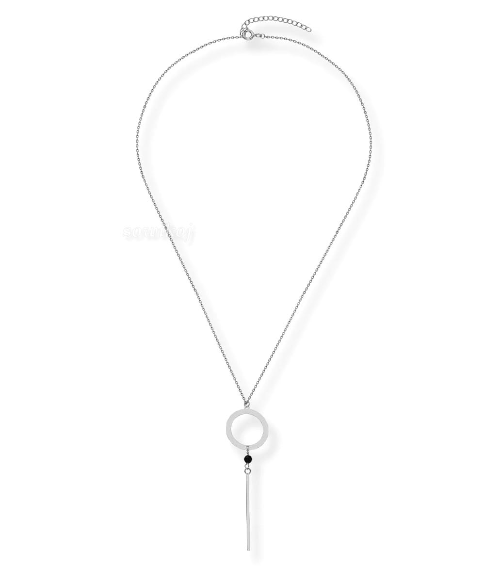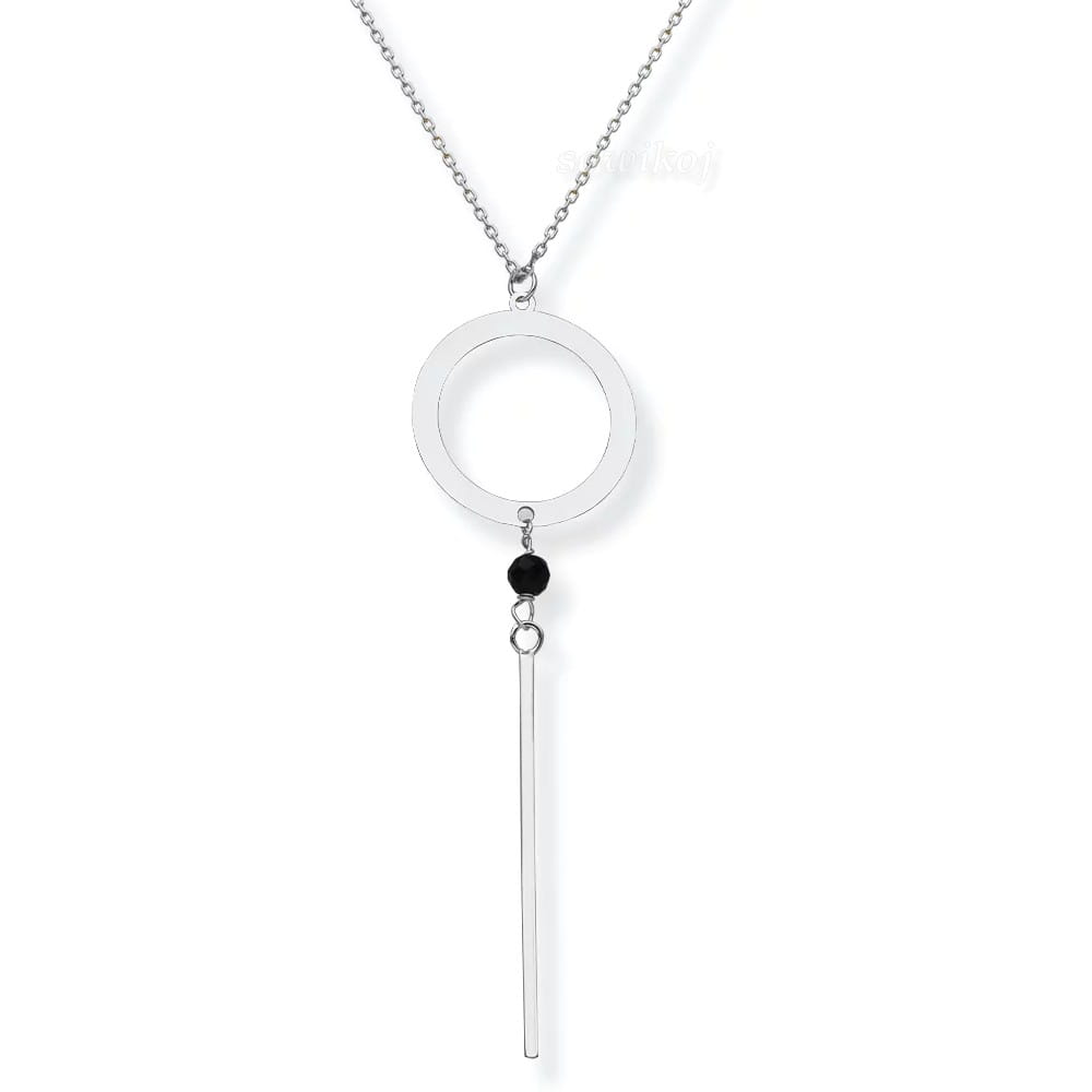 Delikatny i ciekawy naszyjnik z kółeczkiem i czarnym spinelem oraz beleczką w zakończeniu zawieszki. Łańcuszek delikatnie podkreśla dekolt.