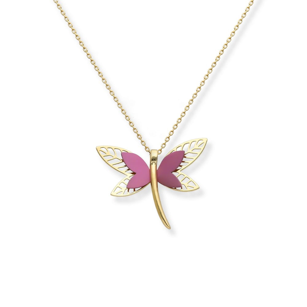 Mała ważka lila róż naszyjnik tytanowy łańcuszek srebro pozłacane