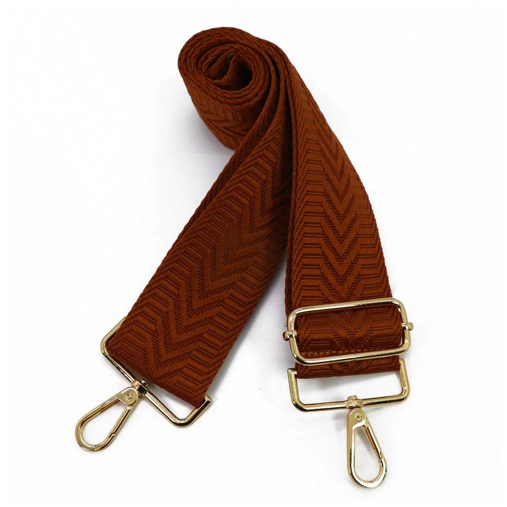 Paski do torebki. Tu orzechowy brąz, szerszy. Uszy - rączki do torebki - uchwyt z regulacją oraz 2 złote karabińczyki do zapięcia.