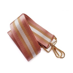 Paski do torebki glamour pudrowy róż, złoty i biały. Uszy - rączki do torebki - uchwyt z regulacją oraz 2 karabińczyki do zapięcia.