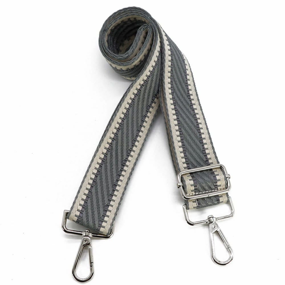 Paski do torebki szary z beżem, lekki glamour. Uszy - rączki do torebki - uchwyt z regulacją oraz 2 karabińczyki do zapięcia.
