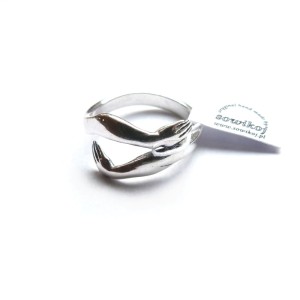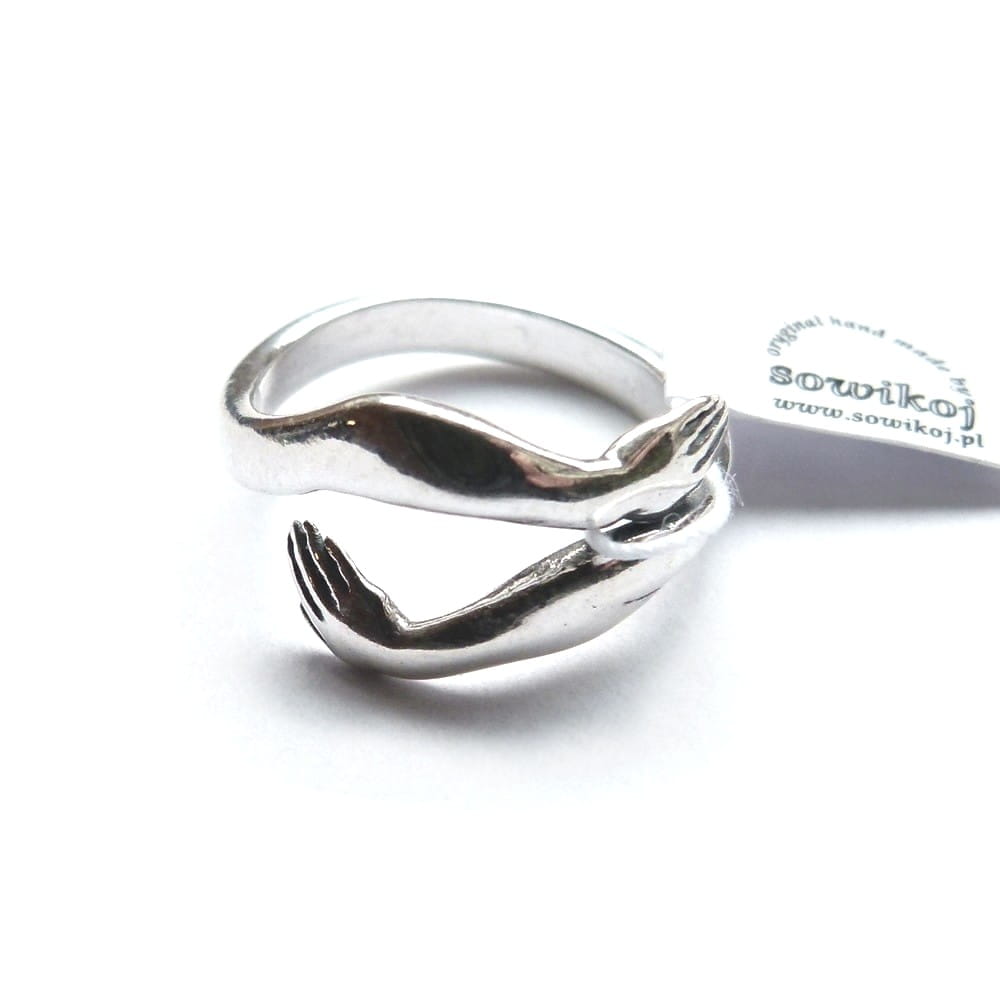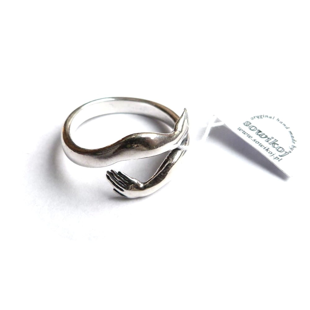 Pierścionek srebrny uścisk splecione ręce przestrzenny