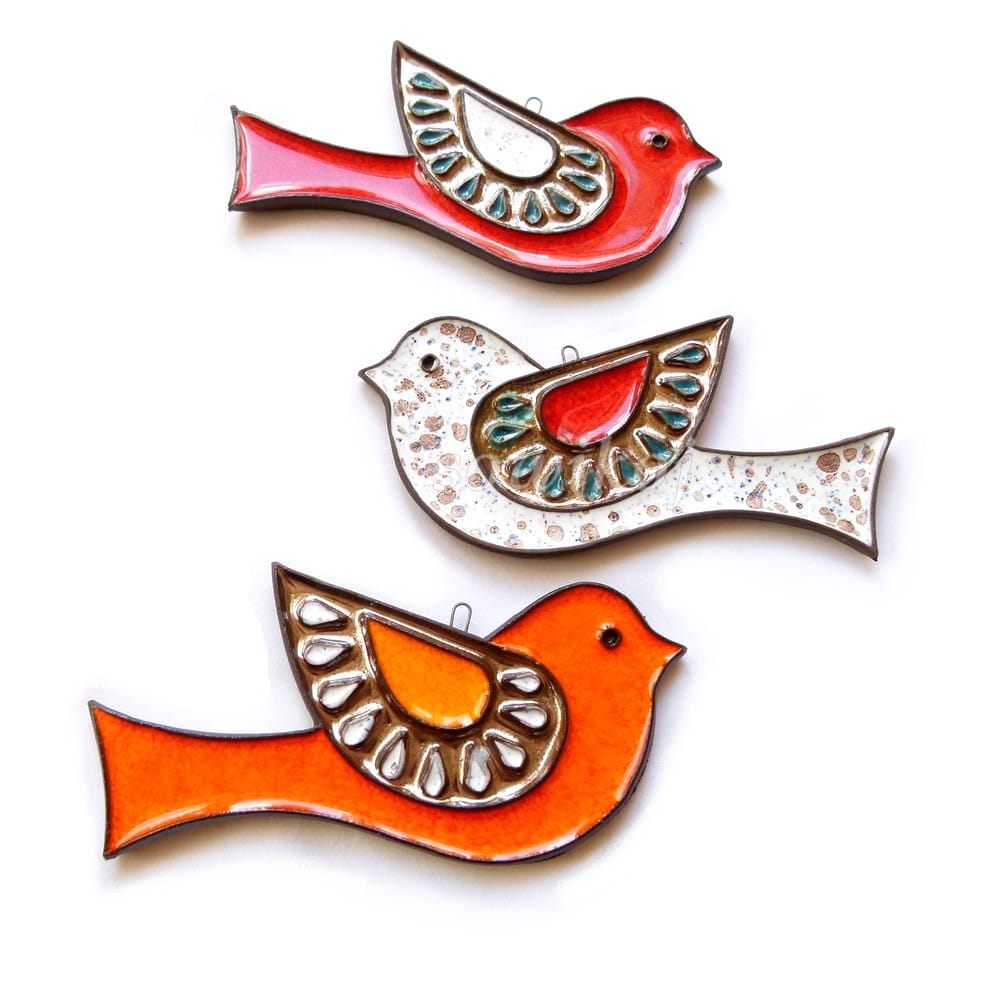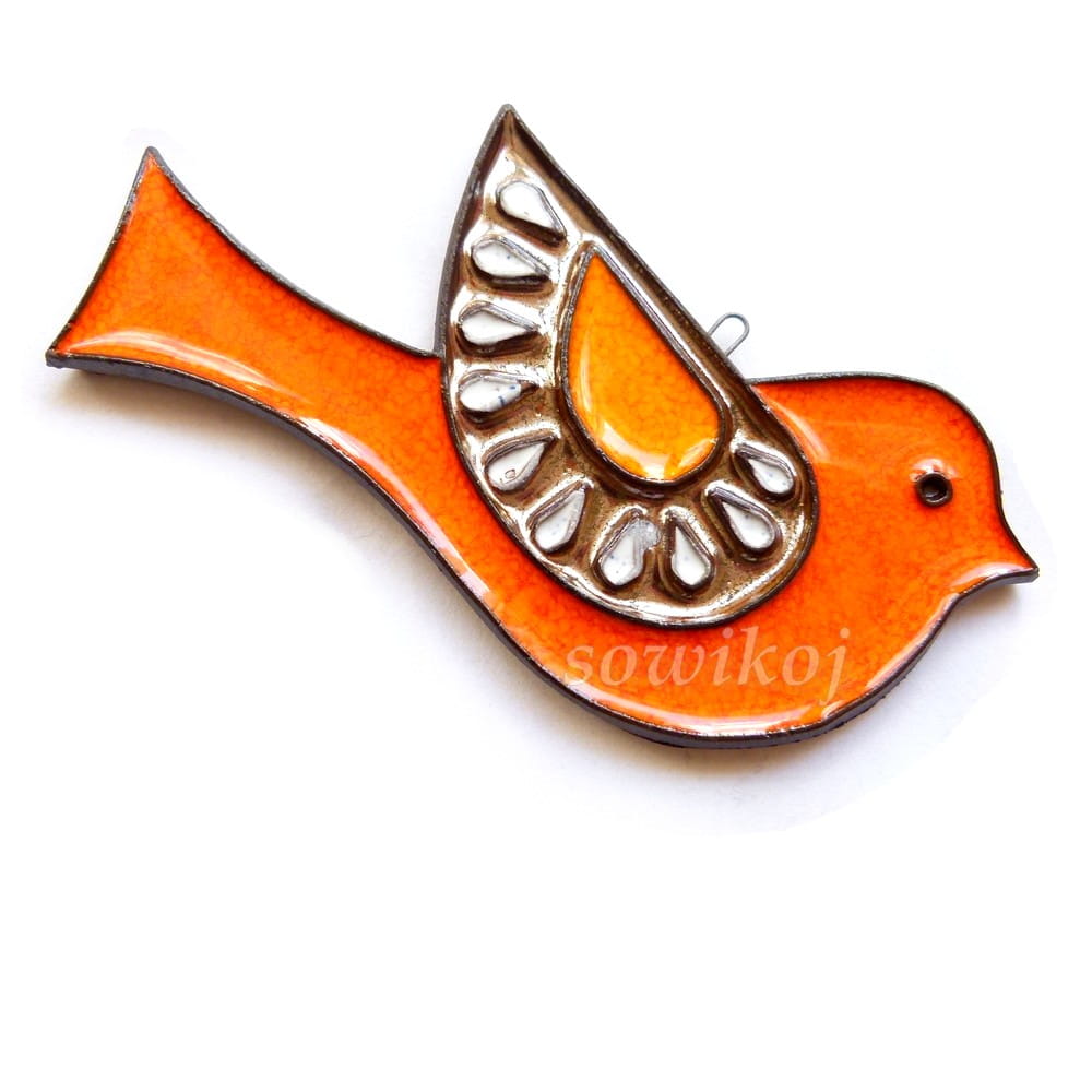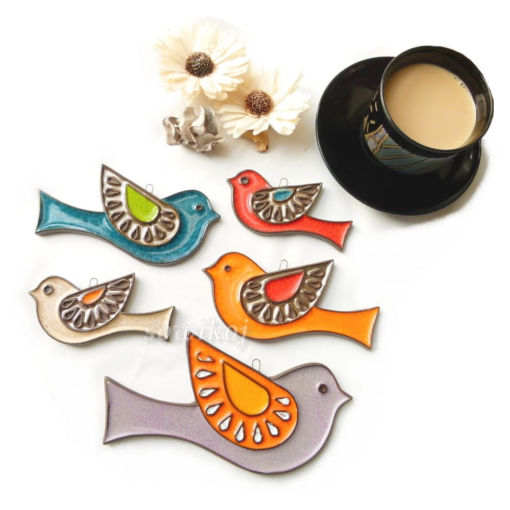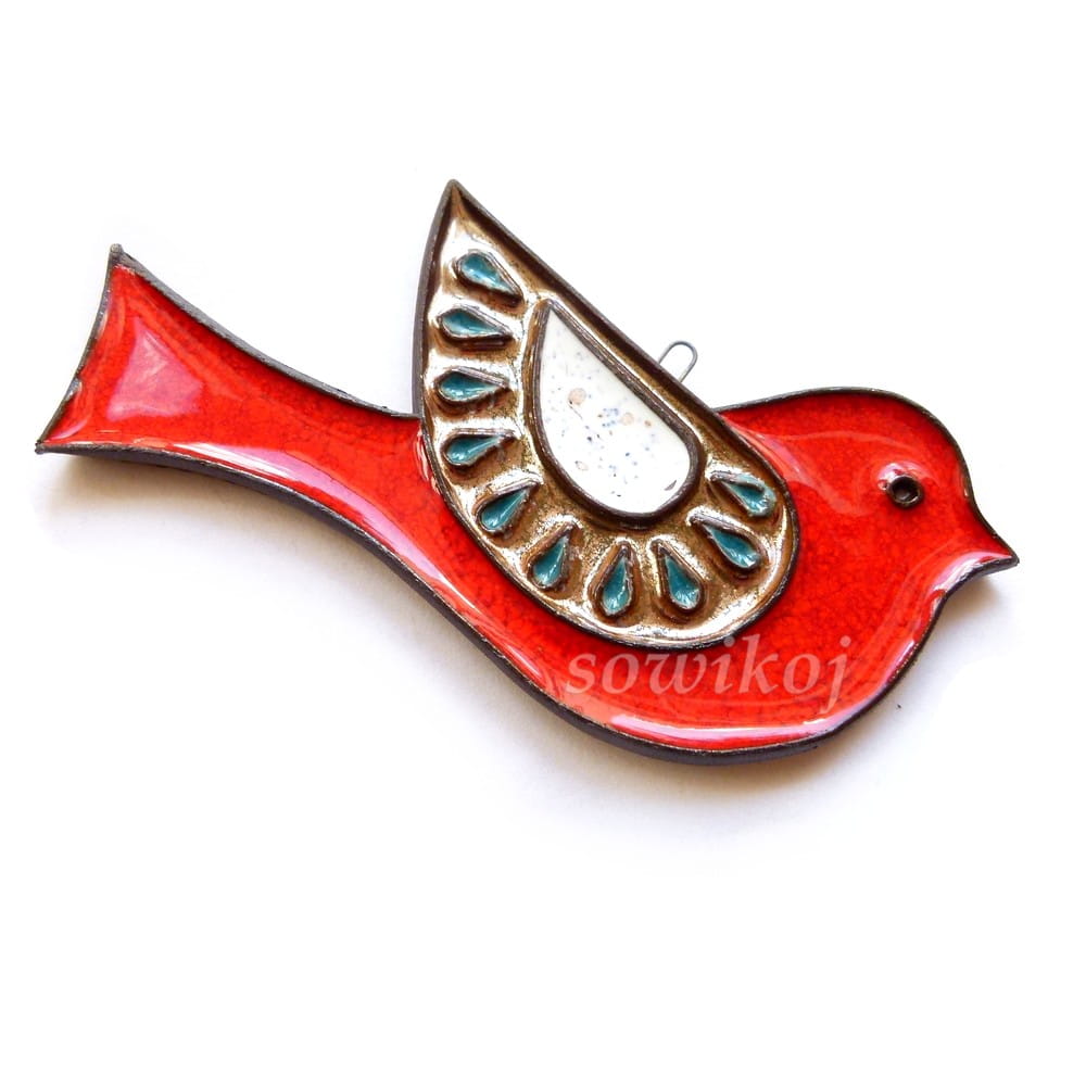 Ceramiczny ptaszek - gołąbek średni. Zawieszka na ścianę. W całości autorska i ręcznie wykonana praca. Ceramika szkliwiona. 1 sztuka.