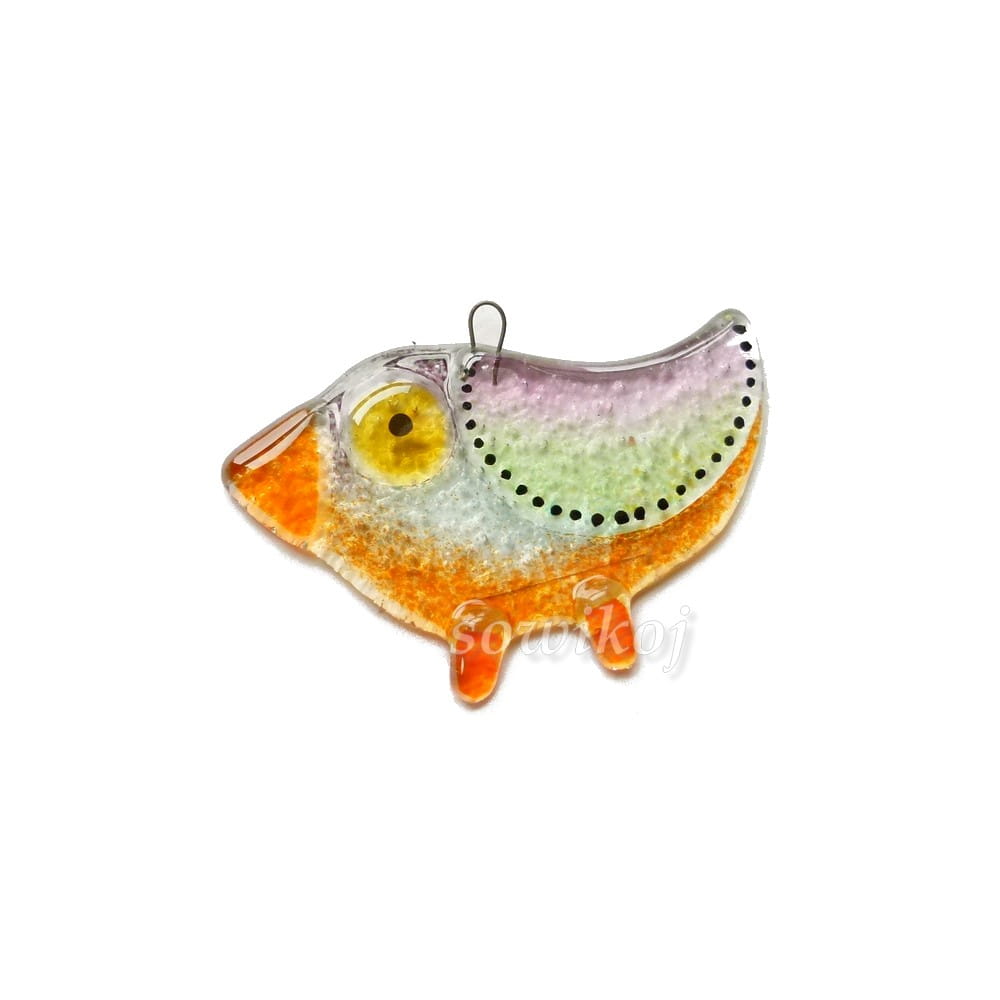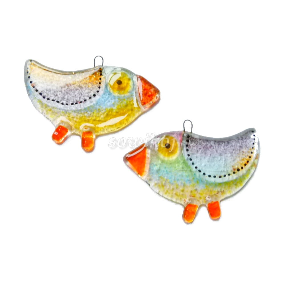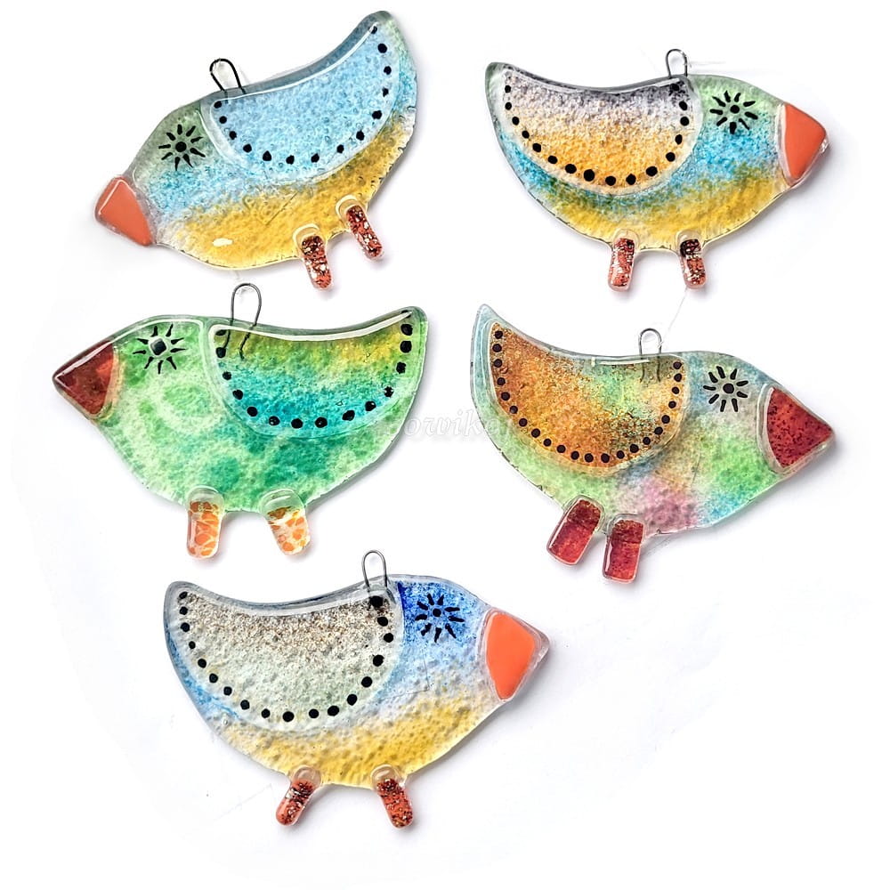 Pękate małe szklane kolorowe ptaszki z nóżkami - zawieszki okienne. W całości autorska i ręcznie wykonana praca metodą topienia szkła fusing. Zawieszka - panel okienny.