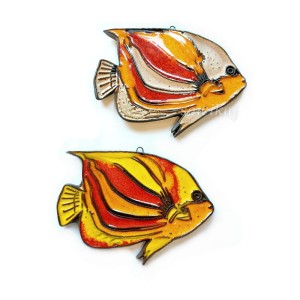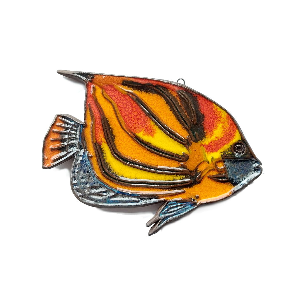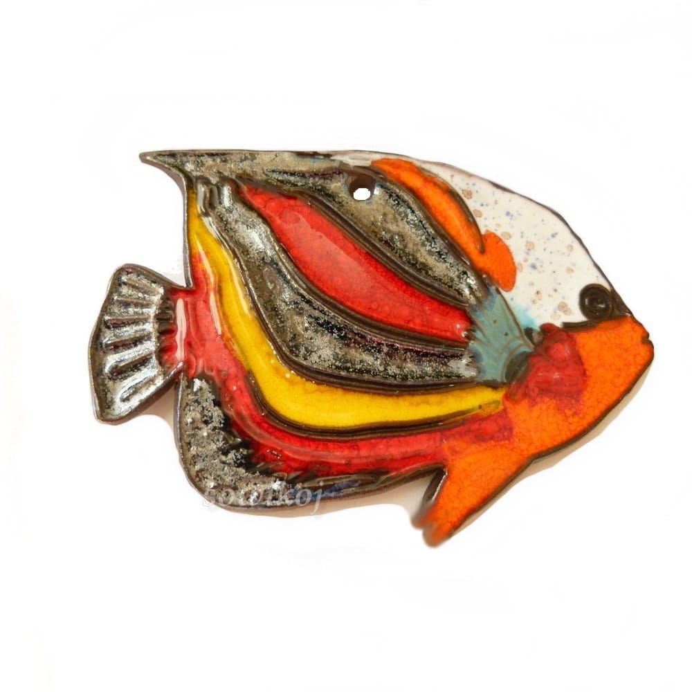Rybka ceramiczna pielęgnica - zawieszka - obrazek do powieszenia na ścianie. W całości autorska i ręcznie wykonana praca. Ceramika szkliwiona. Wielobarwna.