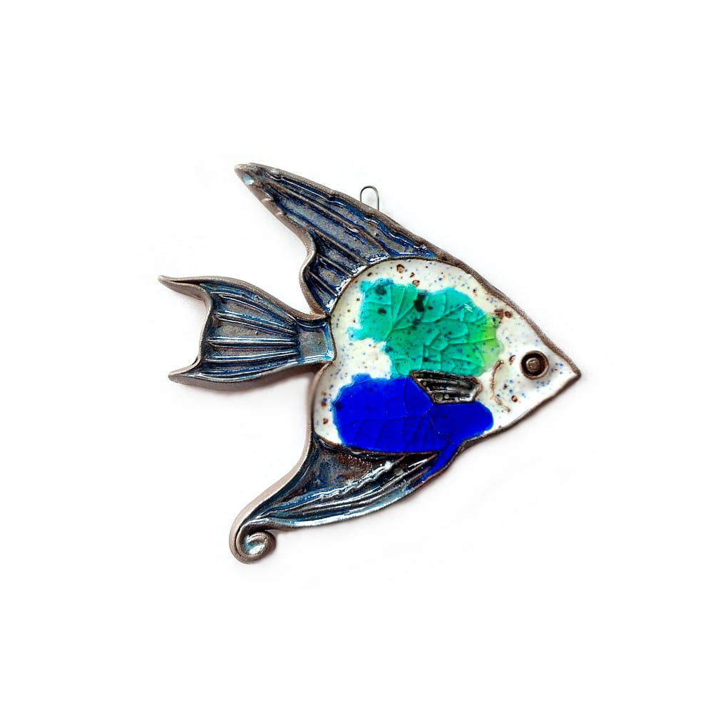Rybka ceramiczna mniejsza - skalar - zawieszka - obrazek do powieszenia na ścianie. Dziurka w górnej częsci do mocowania na gwoździu.