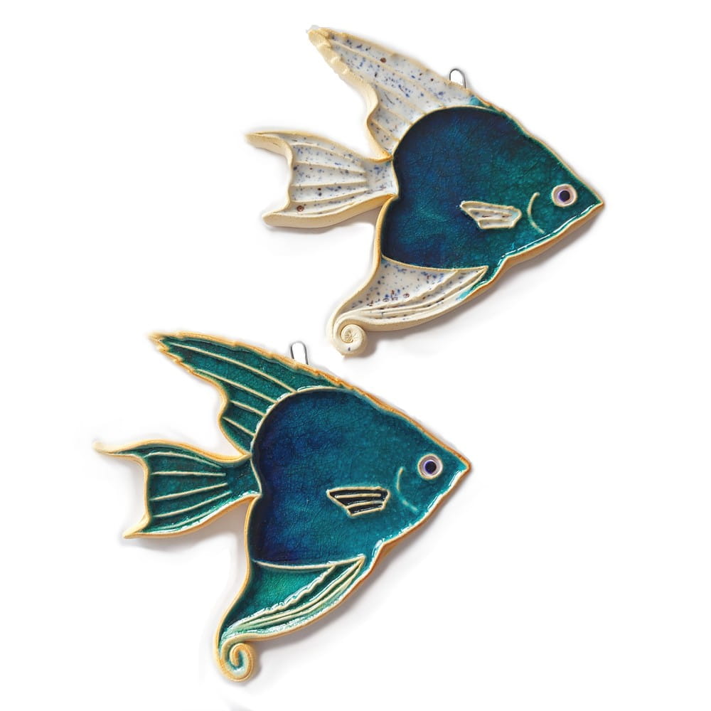 Rybka ceramiczna większa - skalar- wykonany ręcznie. W całości autorska i ręcznie wykonana praca. Ceramika szkliwiona i wypalana w piecu. Polskie rękodzieło.