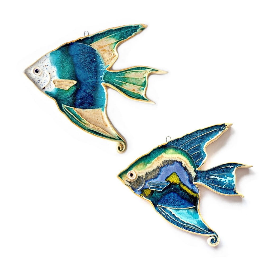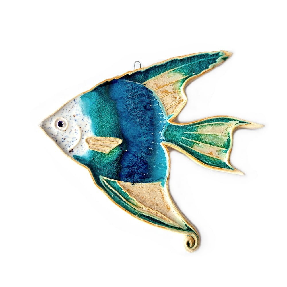 Rybka ceramiczna większa - skalar- wykonany ręcznie. W całości autorska i ręcznie wykonana praca. Ceramika szkliwiona i wypalana w piecu. Polskie rękodzieło.