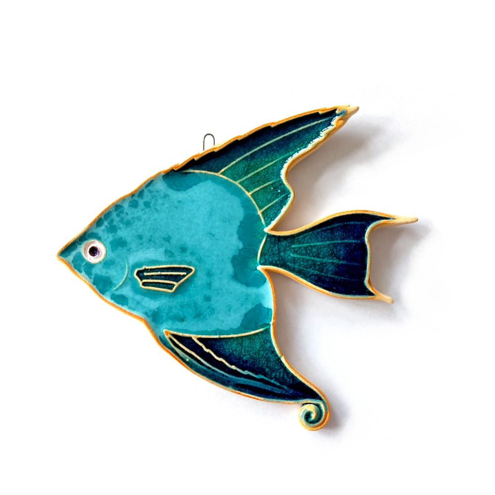 Rybka ceramiczna większa - skalar- wykonany ręcznie. W całości autorska i ręcznie wykonana praca. Ceramika szkliwiona i wypalana w piecu. Polskie rękodzieło.