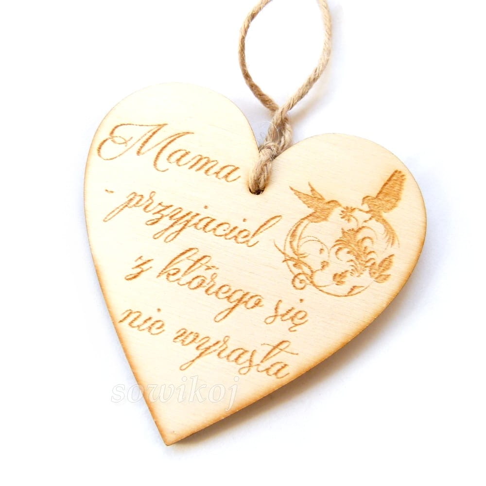 Serce grawerowane z napisem dla mamy. Zabawny gadżet - idealny prezent dla wszystkich mam! Na prezent i nie tylko! Do powieszenia w ulubionym miejscu.