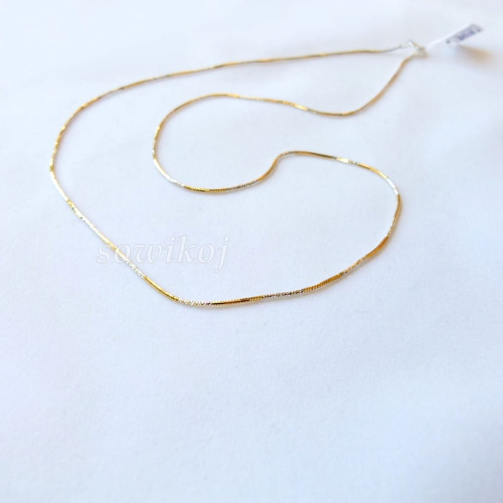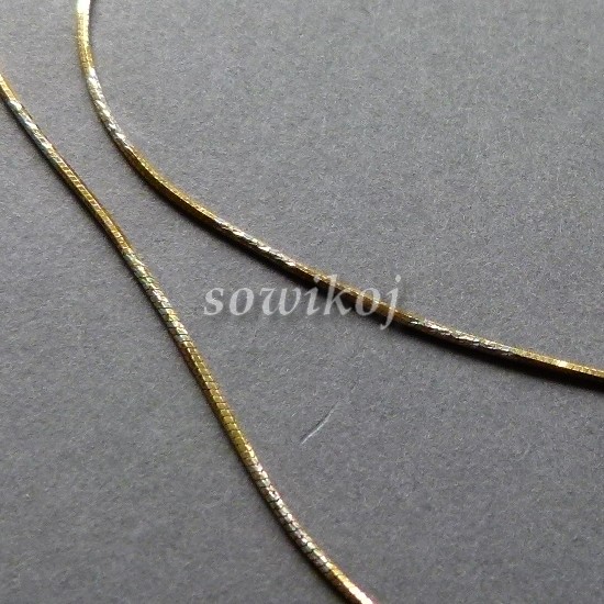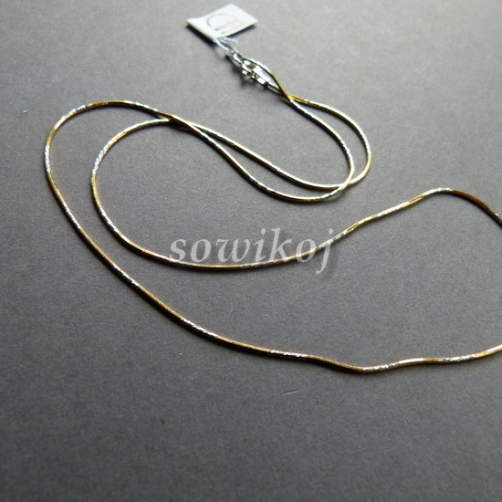 Łańcuszki srebrne. Srebrny delikatny dwukolorowy łańcuszek. Pozłacany i nacinany laserowo łańcuszek. Doskonały jako samodzielna ozdoba jaki pod pozłacane czy mieszane zawieszki. Srebro próby 925.Różne długości. Bardzo ciekawie wygląda na szyi. Waga ok 2,8/3g zależnie od długości.