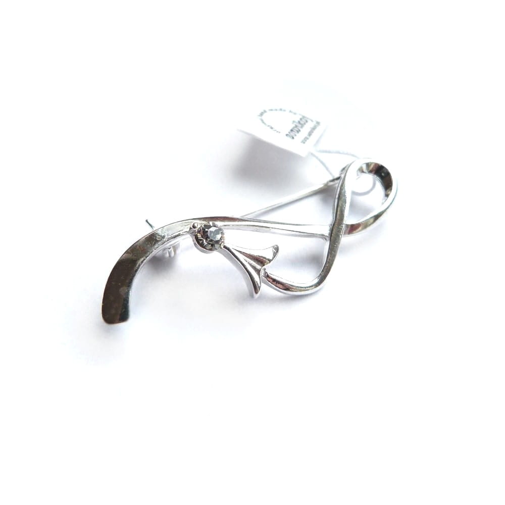 Strzałka przypinka z pojedynczą cyrkonią. Broszka z zapięciem z dodatkową blokada wykonana ze srebra próby 925. Delikatna brosza idealna do klapy marynarki lub kostiumu.