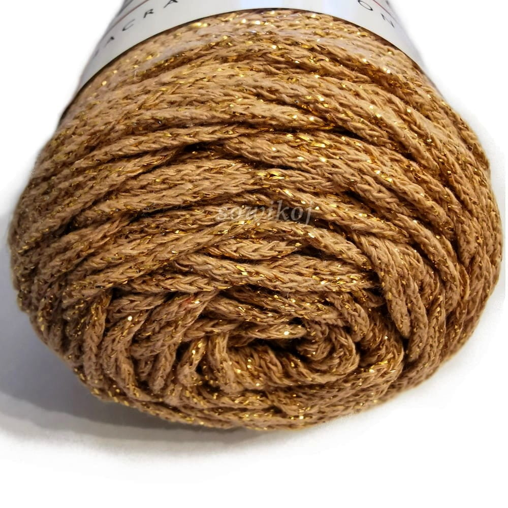 Sznurek do makramy LaCorda Macrame COTTON brąz złoty lurex 2mm kol.290z