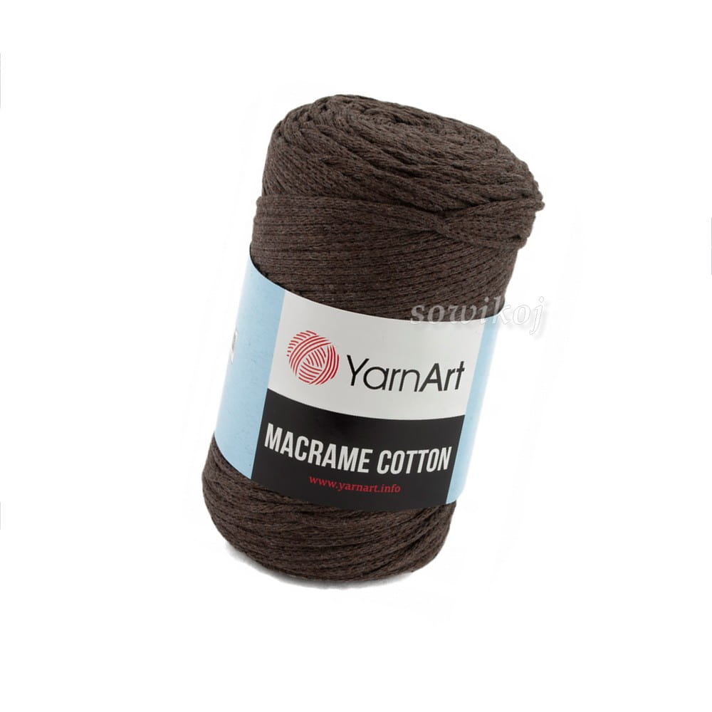 Pleciony gruby sznurek YarnArt Cotton Macrame. Tu w kolorze brązu. Pleciony dzięki czemu idealnie nadaję się do szydełkowania czy na druty - w szczególności torebek, dywanów i ozdób. Idealny do wyrobu mandali, torebek, koszyków, dywanów, podkładek itp. Duże motki 225m i 0,25 kg! Dostępne są również inne kolory.