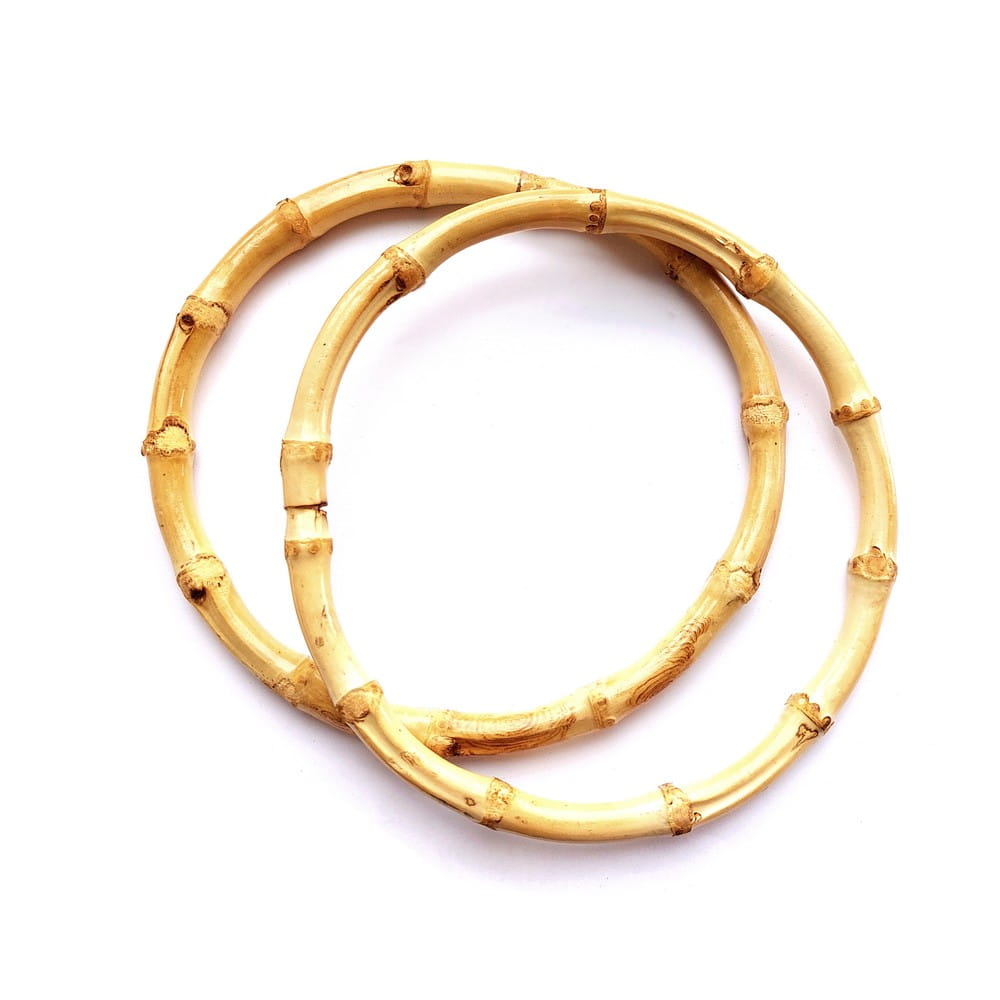 Bambusowe okrągłe rączki do torebki - uchwyty. Kółka w kolorze naturalnym - lakierowane.