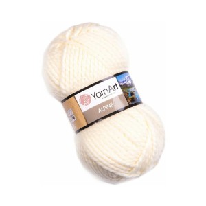YarnArt Alpine to miękka puszysta, bardzo gruba włóczka typu super bulky, jednokolorowa. Mieszanka wełny z akrylem. 45% wełna 55 % akryl. Przeznaczona do szydełkowania lub robienia na drutach. Duże motki! 150 g 103 m. Nitki skręcone.