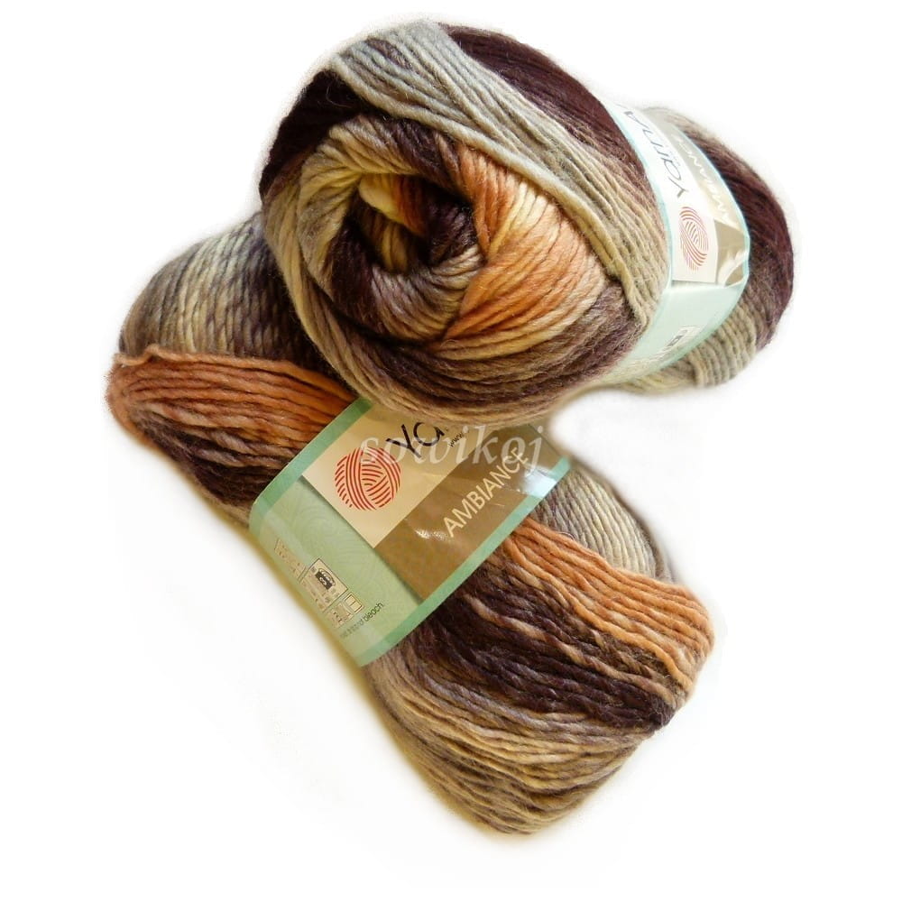 YarnArt Ambiance w odcieniach brązu - włóczka mieszanka wełny i akrylu - nitki skręcone, włóczka z cieniowaniem - przejściami kolorów. Przeznaczona do szydełkowania lub robienia na drutach. 100g motki. Skład: 20% wełna 80% akryl.