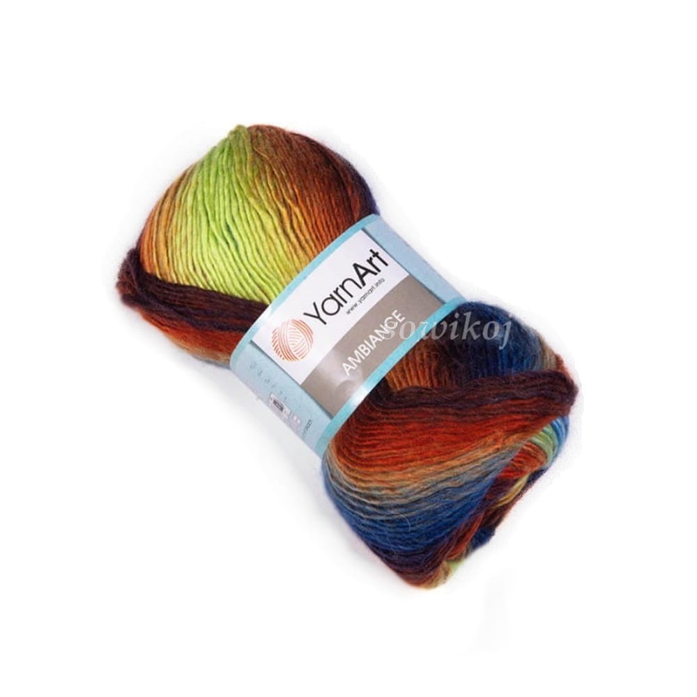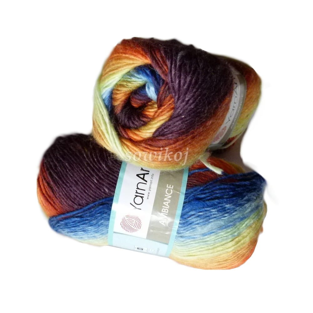 YarnArt Ambiance włóczka mieszanka wełny i akrylu - nitki skręcone, włóczka z cieniowaniem - przejściami kolorów. Przeznaczona do szydełkowania lub robienia na drutach. 100g motki. Skład: 20% wełna 80% akryl.