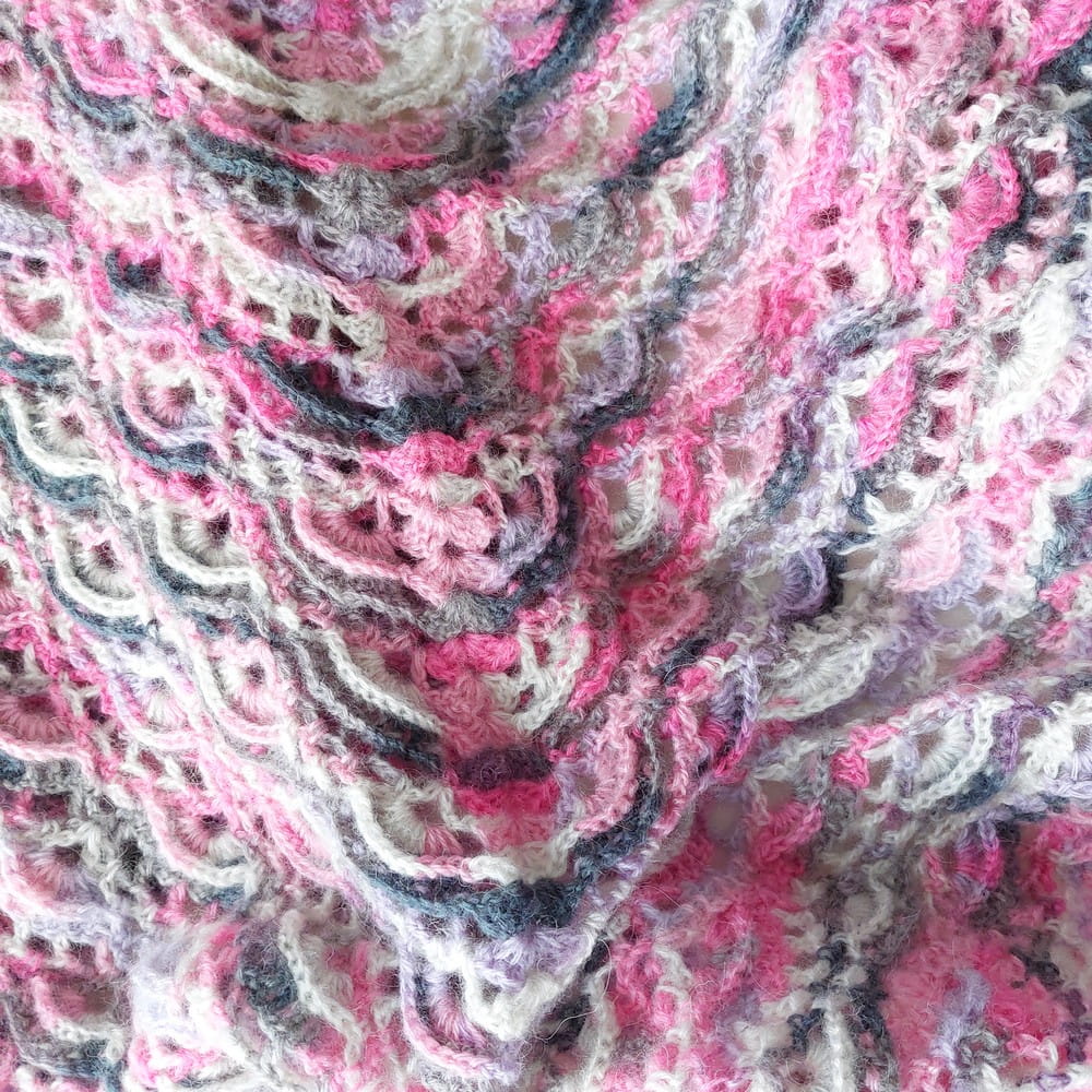 Wielokolorowa, kolory dominujące: Jasny fiolet, róż, szary