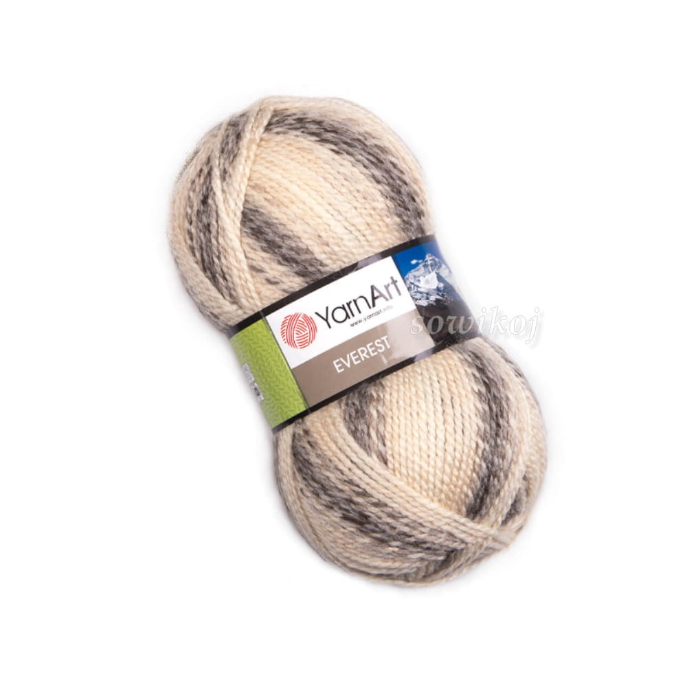 YarnArt Everest to miękka puszysta, dosyć gruba i bardzo wydajna włóczka, cieniowana. Mieszanka wełny z akrylem. 30% wełna 70 % akryl premium. Przeznaczona do szydełkowania lub robienia na drutach. Duże motki! 200 g 320 m. Nitki skręcone.