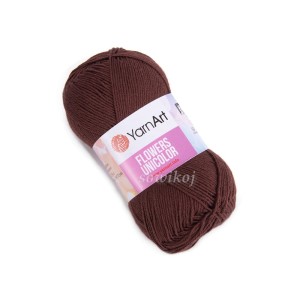 YarnArt Flowers UNICOLOR to włóczka mieszanka bawełny z akrylem. 55% bawełna 45% akryl premium, pomyślana jako dawca - uzupełnienie jeśli zabraknie Ci włóczki w bazowym flowersie lub jeśli chcesz dodać - powiększyć swoją robótkę. Uzupełnienie motków serii Flowers. Motek w kolorze pięknego brązu. Idealna włóczka na wyroby dla dzieci oraz zabawki i maskotki. YarnArt Flowers Unicolor jest to wydajna włóczka jednobarwna dostępna w szerokiej gamie kolorystycznej. Przeznaczona do szydełkowania jak i robienia na drutach. Jest miękka w dotyku. Cieńsza nieco niż seria włóczek Jeans.