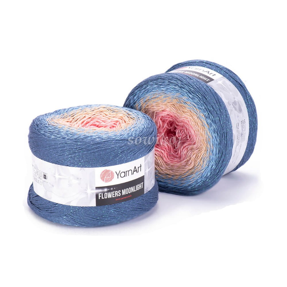 YarnArt Flowers Moonlight kolor 3292 włóczka mieszana bawełniano akrylowa - nitki skręcone, włóczka z długimi przejściami kolorów, efekt ombre. Przeznaczona do szydełkowania lub robienia na drutach. Duże motki! Skład: 55% bawełna 45% akryl. 4 kolory z nitką metalizowaną.
