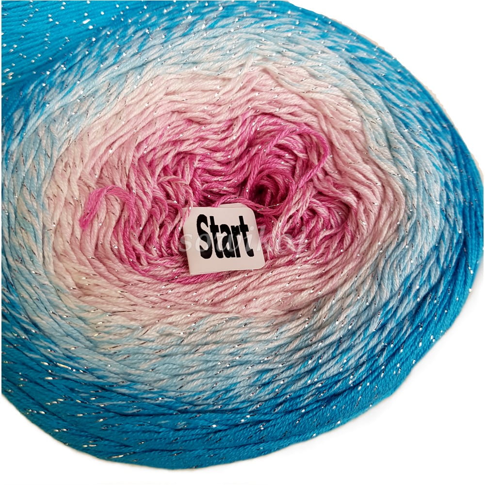 Mix kolorów - w środku fioletowo różowy, pudrowy róż, kremowy, turkusowy oraz nić metalizowana srebrna.
