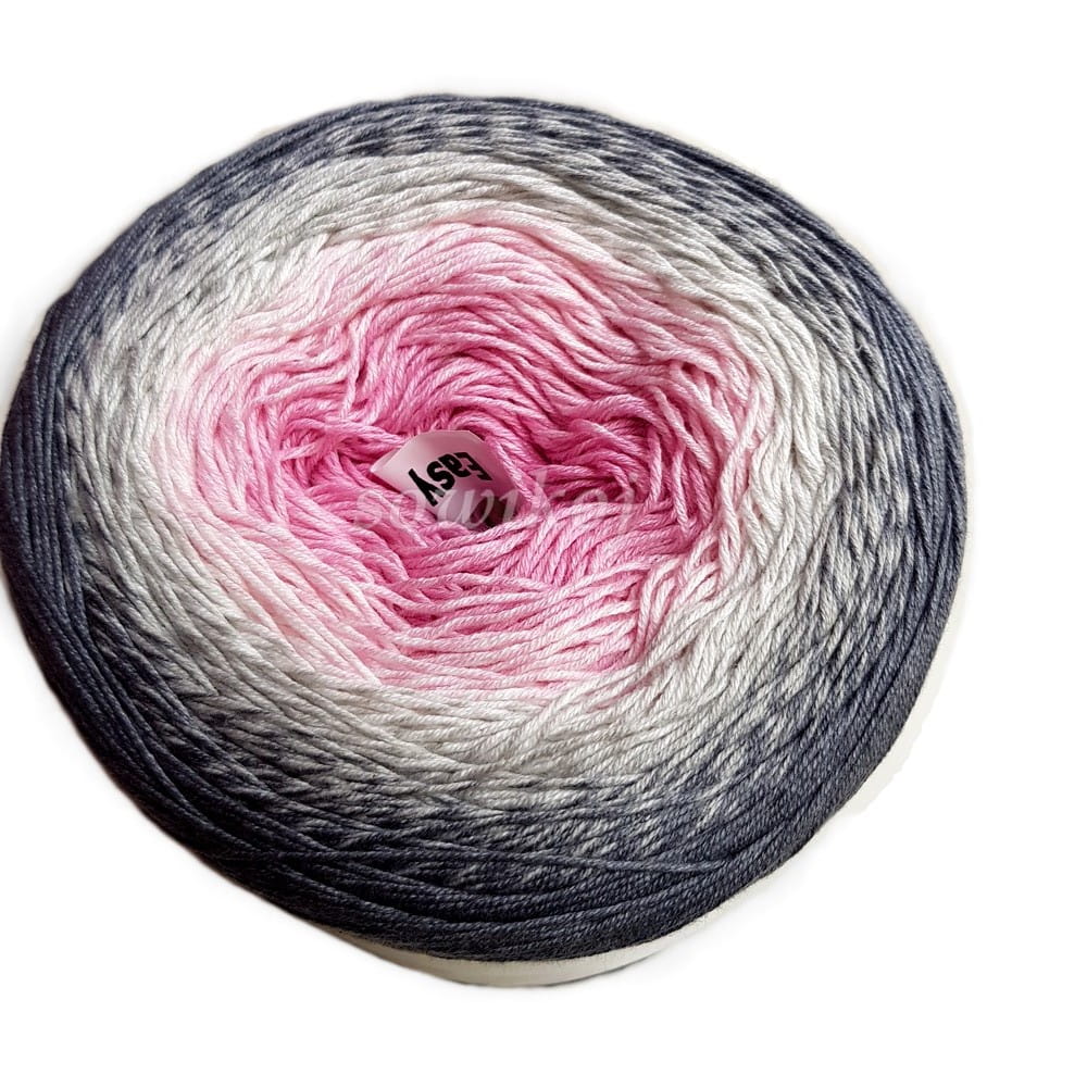 Kolorowy motek kol. 293 z długimi przejściami kolorów w delikatnej tonacji - efekt ombre. Przeznaczona do szydełkowania lub robienia na drutach. Duże motki! Skład: 55% bawełna 45% akryl. Długość motka 1000 m , 250 g. Easy - start - zalecany początek ze środka motka - ułatwia pracę.