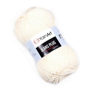 YarnArt JEANS PLUS to miękka puszysta i wydajna włóczka jednobarwna, nieco grubsza od popularnego Jeansu. Mieszanka bawełny z akrylem. Przeznaczona do szydełkowania lub robienia na drutach. Idealna na maskotki i amigurumi. Tu w kolorze kremowym - ecru.