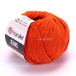YarnArt JEANS to miękka puszysta i wydajna włóczka jednokolorowa. Mieszanka bawełny z akrylem. Przeznaczona do szydełkowania lub robienia na drutach. Idealna na maskotki i amigurumi. Tutaj w kolorze rudym.