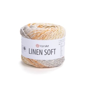 Yarn Art Linen Soft włóczka wielokolorowa dostępna w szerokiej gamie kolorów - Len i bawełna z wiskozą - tu mix kolorów w tonacji piaskowej - żółty i beżowy. Włóczka skręcana, miejscami błyszcząca, średniej grubości. Bardzo miękka i przyjemna w dotyku. Przeznaczona do szydełkowania lub robienia na drutach. Motki 100g 272m.