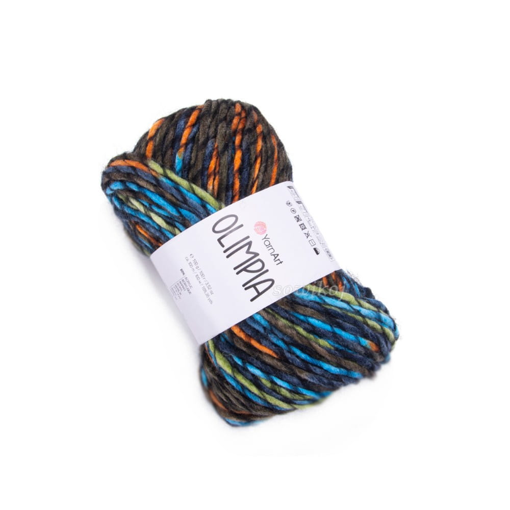 Kolorowa YarnArt Olimpia to miękka puszysta, grubsza wydajna włóczka. Mieszanka wełny z akrylem 20/80%. Przeznaczona do szydełkowania lub robienia na drutach. Duże motki! 100 g 100 m.
