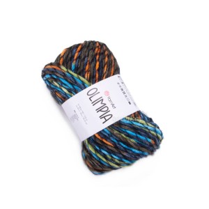 OLIMPIA włóczka firmy YarnArt to miękka puszysta, gruba włóczka, wielokolorowa z jedną przewodnią nitką na całej długości w kolorze czarnym. Mieszanka wełny z akrylem. 20% wełna 80 % akryl premium. Przeznaczona do szydełkowania lub robienia na drutach. Duże motki! 100 g 100 m. Nitki skręcone, puszyste. Czarny kolor na całej długości daje świetny efekt wizualny w kominach i czapkach, swetrach.