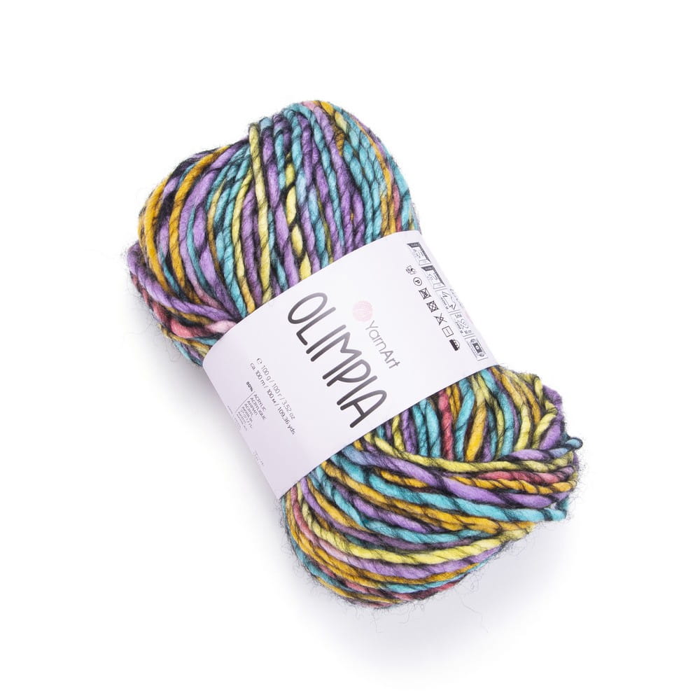 YarnArt Olimpia to miękka puszysta, grubsza wydajna włóczka, wielokolorowa. Mieszanka wełny z akrylem 20/80%. Przeznaczona do szydełkowania lub robienia na drutach. Duże motki! 100 g 100 m.