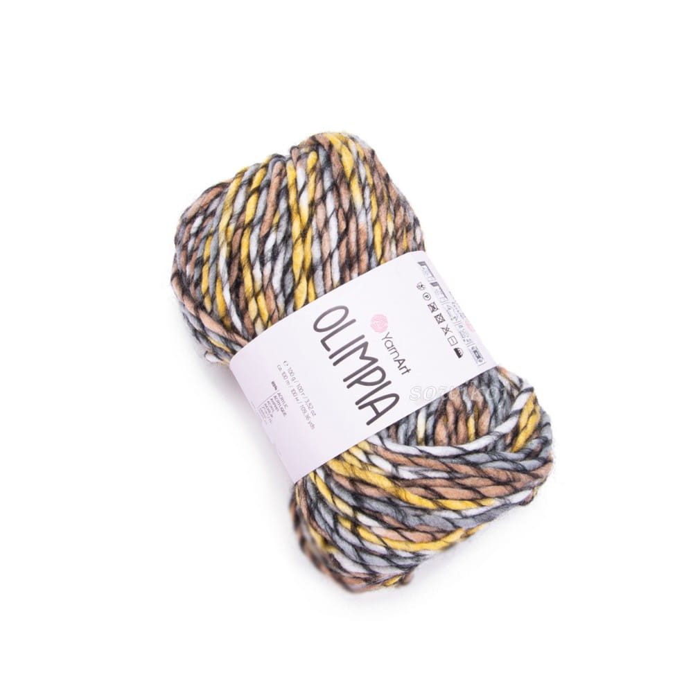 Kolorowa YarnArt Olimpia to miękka puszysta, grubsza wydajna włóczka. Mieszanka wełny z akrylem 20/80%. Przeznaczona do szydełkowania lub robienia na drutach. Duże motki! 100 g 100 m.
