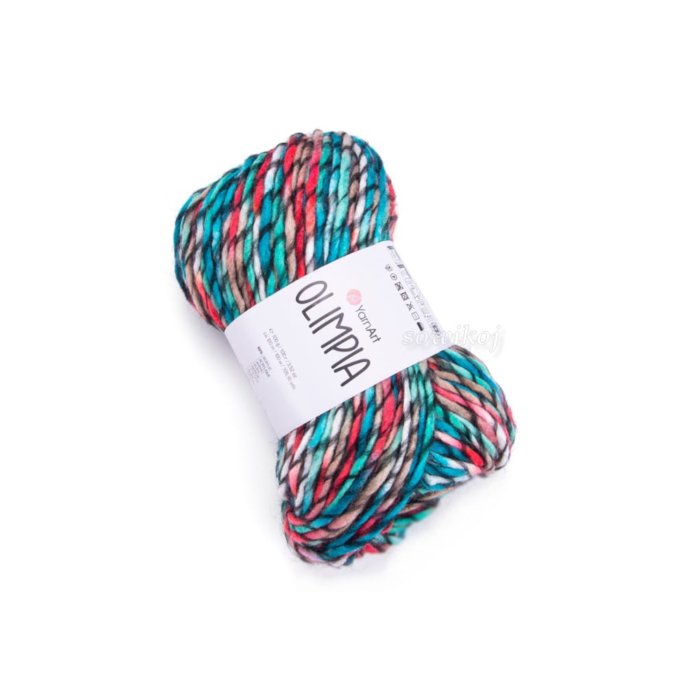 Kolorowa YarnArt Olimpia to miękka puszysta, grubsza wydajna włóczka. Mieszanka wełny z akrylem 20/80%. Przeznaczona do szydełkowania lub robienia na drutach. Duże motki! 100 g 100 m.