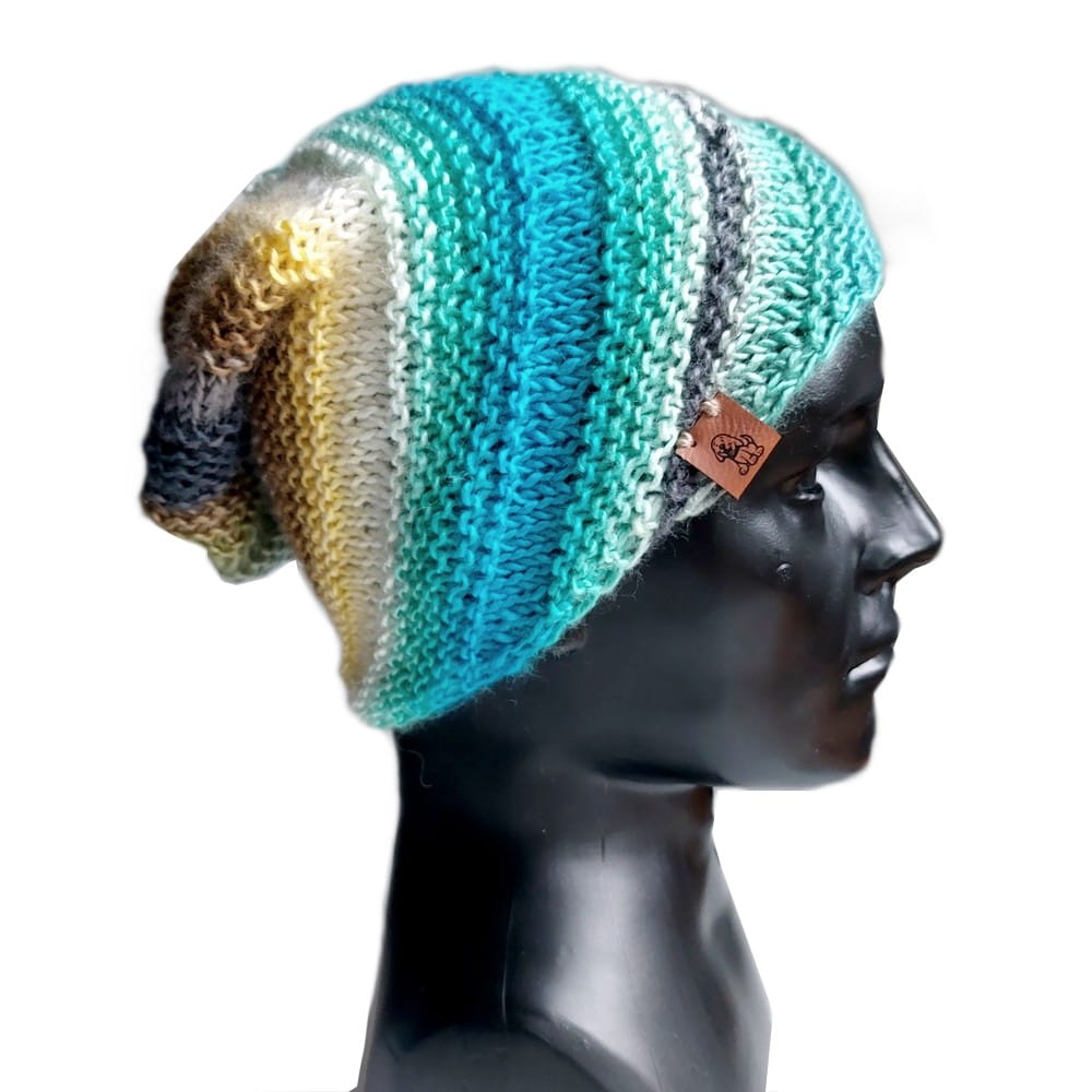 Wzór na czapkę w skośne paski na druty czapka smerfetka beanie