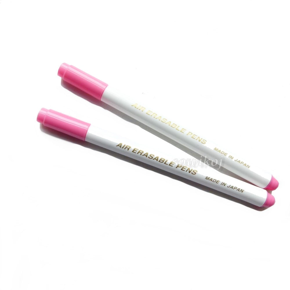 Znikający pisak do materiału - made in Japan. Ślad pisaka znika pod wpływem wilgoci lub samoistnie po około dwóch dniach (szybkość reakcji zależy od wilgotności powietrza). Pomocy przy tworzeniu wykrojów, zaznaczaniu poprawek na materiałach itp.